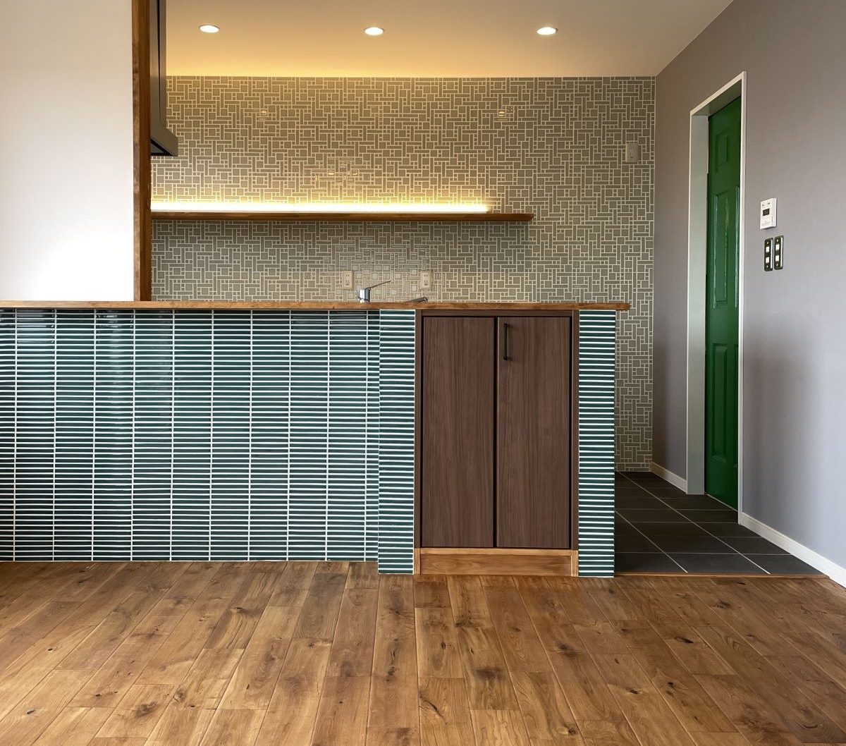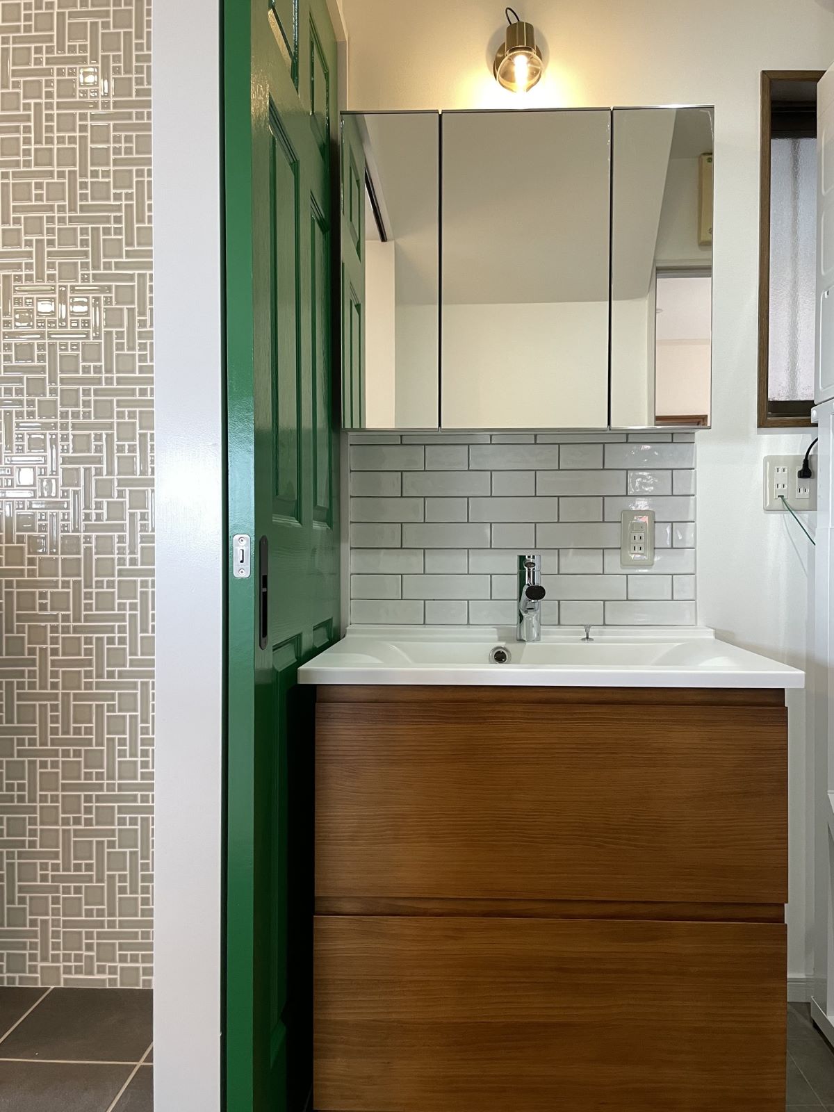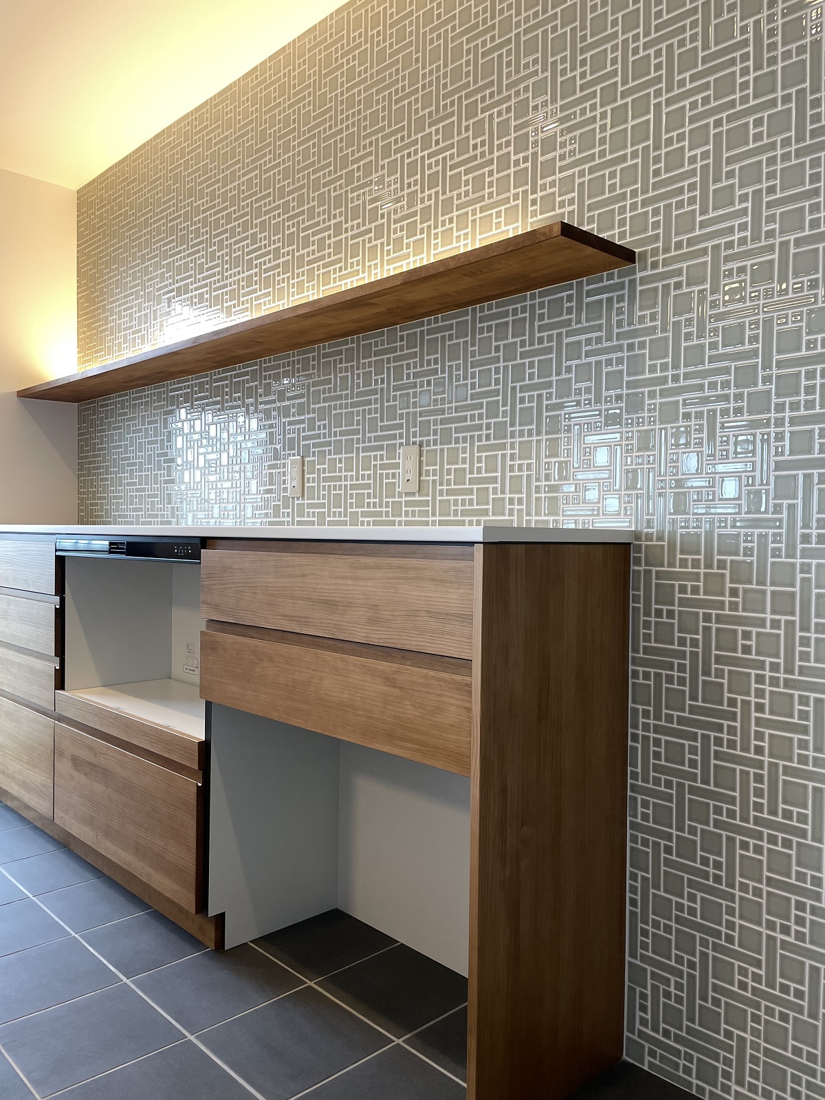 キッチンや全体のクロス、タイルの色・建具のデザイン・無垢の木の種類などは全て奥様に一任されていましたので、お一人のイメージで全体がしっかりと統一感のとれたおしゃれな仕上がりとなりました。2階にある寝室やウォークインクローゼット、和室などはクロスの交換などだけで予算を抑え、その分キッチンと洗面台はウッドワン、トイレは2台ともタンクレス、無垢の床は全てオーク、などこだわる所はしっかりとこだわって作り上げました。ご夫婦共働きということで「衣類用ガス乾燥機」をご提案させて頂きましたが、大変気に入っていただきました。大切なご実家での新しい生活のお手伝いができてとてもよかったです。